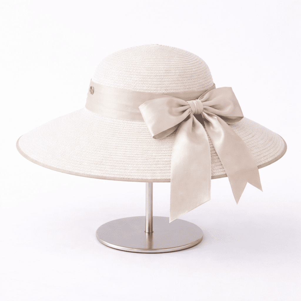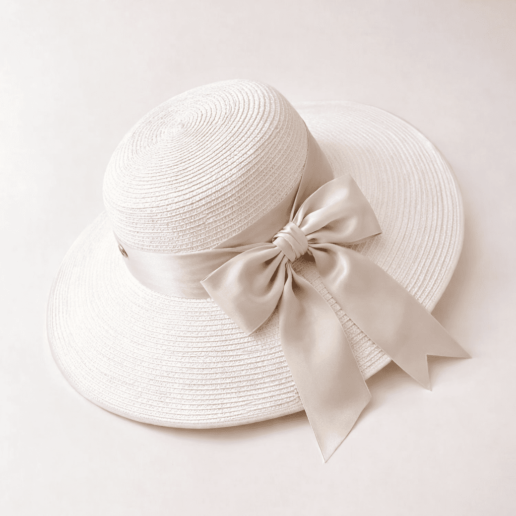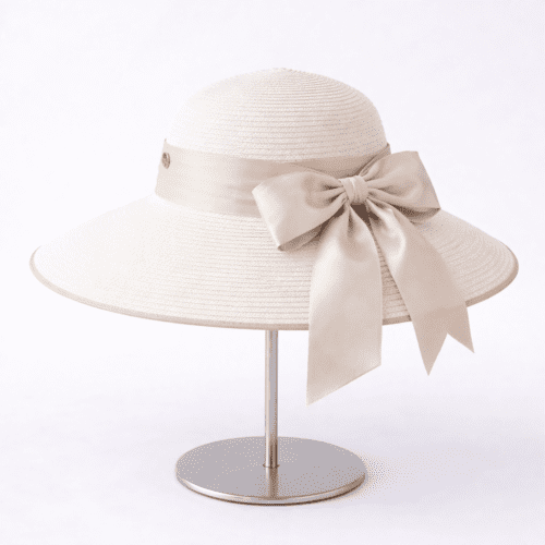 Điểm nhấn nổi bật của sản phẩm là chiếc nơ lụa màu kem lớn được thắt gọn gàng bên hông nón, mang lại vẻ dịu dàng và sang trọng. Thiết kế này không chỉ giúp chiếc nón trở nên nổi bật mà còn tạo cảm giác mềm mại, nữ tính cho người đội.