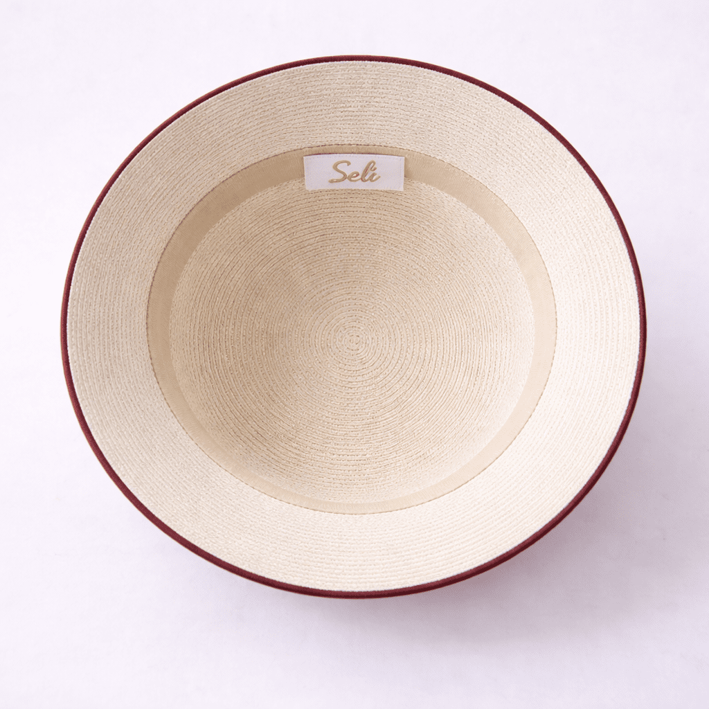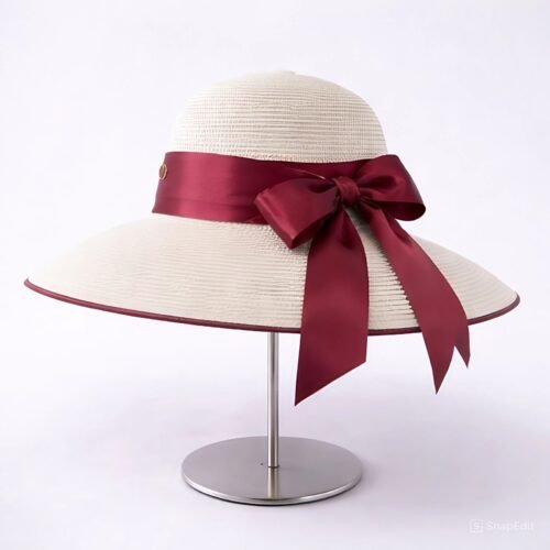 SELI RUBY GRACE là mẫu nón vành rộng mang phong cách thanh lịch pha chút cổ điển, dành cho những cô nàng yêu sự tinh tế và nổi bật một cách nhẹ nhàng. Thiết kế tông kem sang trọng kết hợp viền đỏ đô đồng điệu với chiếc nơ lụa bản lớn tạo điểm nhấn đầy cuốn hút.